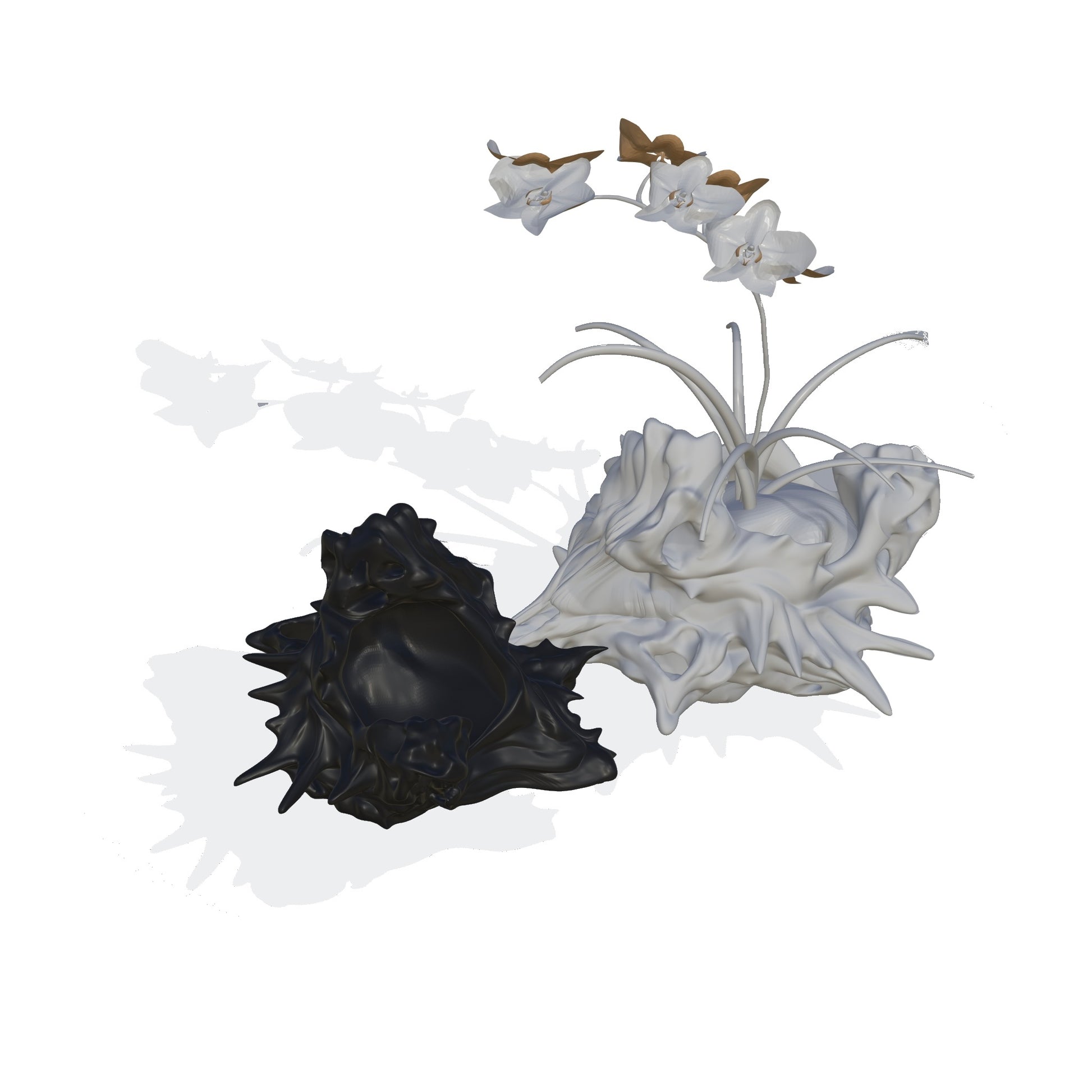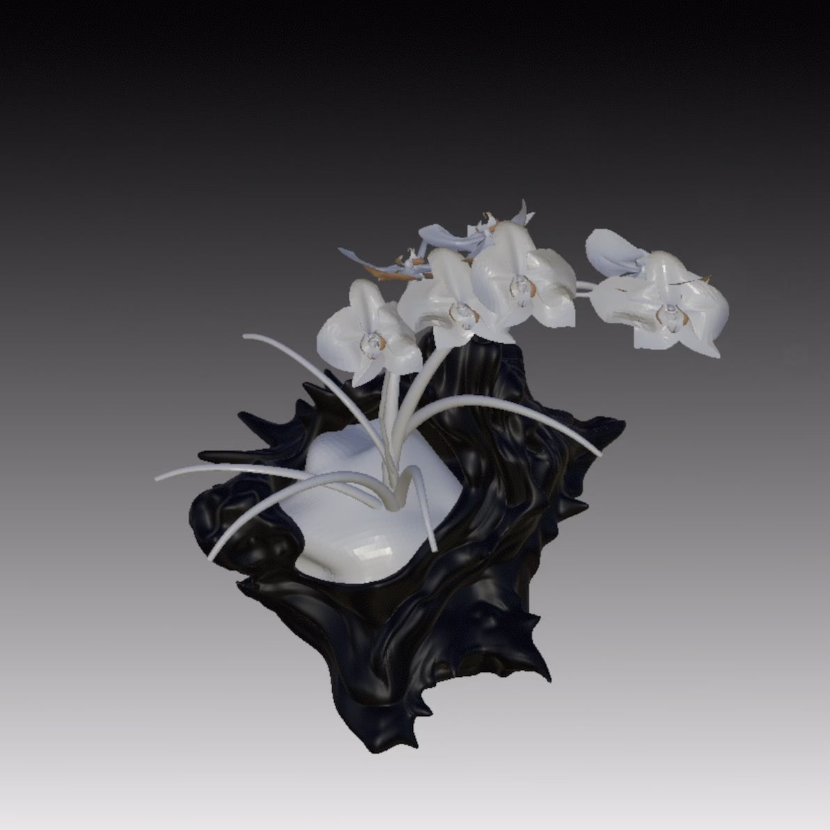 FDM 3D-printed ABS – durable under sunlight and water exposure. Designed for long-term contact with water, making it suitable as a functional pot.
