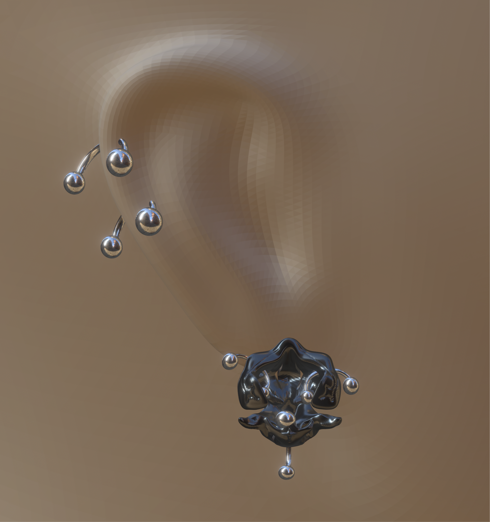 Variant N1 of the moth orchid's core organ structure - reimagined as a sculptural stud earring.